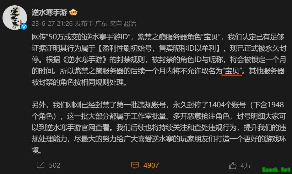 开服前的预体验阶段,部分工作室抢注ID并天价抛售,部分ID如“宝贝”被炒到50元天价,官方也立即对工作室进行果断封杀,游戏开服前就封禁了超过1000个违规账号,一个月不让叫“宝贝”也变成核心玩家之间流传的让人捧腹大笑的梗;