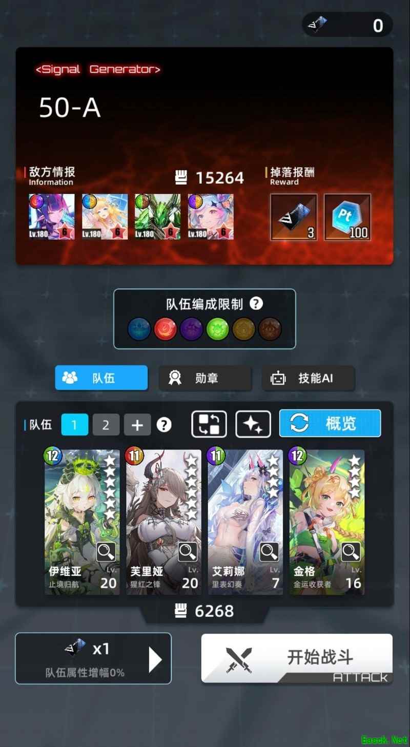 0包系列对练度、基站属性和勋章要求较高,通常需配备金三项、金护盾和金生命。若练度不足,可适当购买2小包(爆破)或5小包(护盾)来提升容错率。 部分超弦队伍稳定性欠佳,适合每周节省钻石、周日前能通关50层的高手玩家。 本帖阵容更新较慢,仅周三放出0包50过关的队伍(因测试阵容需时间,周三能过说明有余票可叠加倍数)。请注意,每人每关票数不固定,可能出现票数不足的情况!!!! 所有四星卡均可参与论坛官方活动我的百分之一获取,每月一次机会。复制之前的帖子修改ID信息即可参与,中奖率100%,千万别错过。 1、火六星龙队 队伍组成: 1号位推荐使用四星灼妖卡,通过联动卡池抽取获得,天赋3必开,等级越高越好,具备抗伤能力。 2号位:游戏少女小神五星卡,通过奇点兑换蓝图获得,天赋一必开。 3号位:翠袯矢天梓,四星卡,50抽保底获得,天赋3必开。 4号位推荐霜冻世纪俄刻诺斯,六星卡,通过奇点兑换蓝图获取,天赋三必须开启。 技能顺序为2134,优先四消。利用前三名角色触发四消,激活霜冻世纪,配合俄刻诺斯天赋3(5%即死效果),但造卡成本较高。 2、爆破芙队