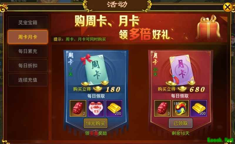 其次为首充三档,第一档(6元)可解锁并获得新手武器一把;第二档(30元)可获得碧血悬符项链;第三档(98元)解锁后可获得护国披风一件。 最后是周卡(18元)和月卡(68元),大家可以根据自身需求选择购买。对于轻度玩家而言,周卡是不错的选择;而氪金玩家则建议入手月卡,这两款礼包性价比极高,几乎等同于免费赠送,非常值得入手。