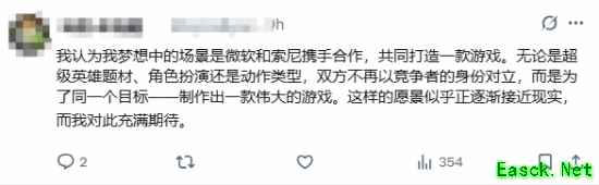 伴随着《漫威金刚狼》的消息逐渐发酵,外国网友逐渐坐不住了,有老外在推特上发推,如果以后有《漫威刀锋战士》采用和《漫威金刚狼》一样的血液效果会怎么样,并且希望索尼和微软可以共享技术。 对此外国网友纷纷表示自己的看法,有网友表示他也希望可以让微软和索尼一同打造一款惊世骇俗的大作。 但是同时也有网友保有悲观情绪,认为只要微软和索尼都还在卖主机,就永远不会合作。 各位觉得呢?微软和索尼有没有可能合作?《漫威刀锋战士》有没有可能出现呢? 本文由制作发布,未经允许禁止转载。 |
