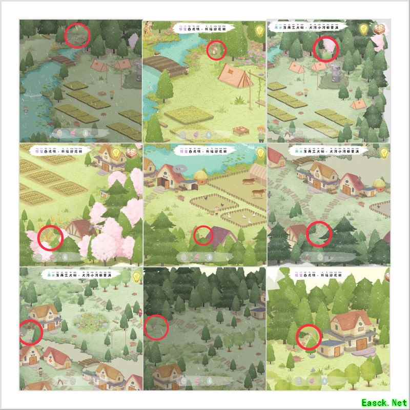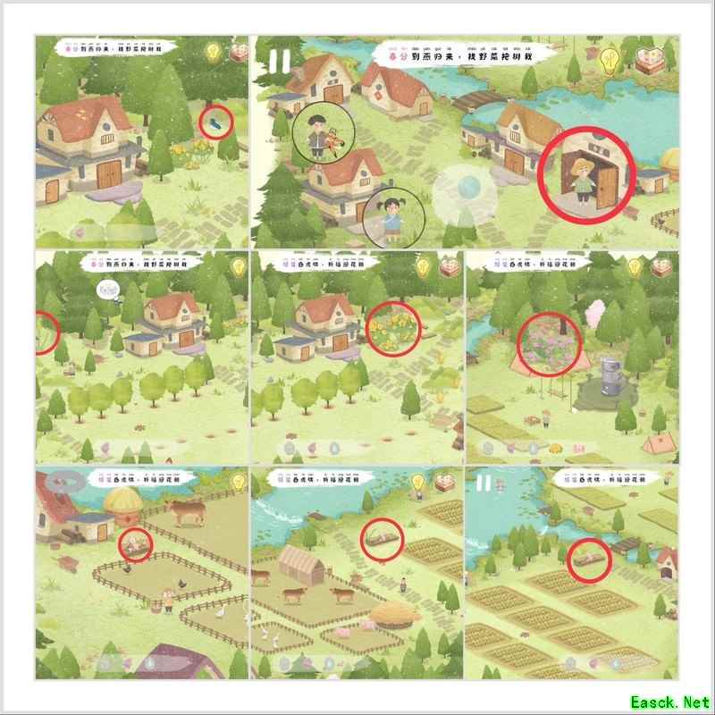 四季之春春场景攻略来啦!本篇将带你快速掌握春季隐藏物品收集技巧,一局完成7大限定成就,解锁白虎互动、速刷任务、疯狂戳图鉴等趣味玩法,助你轻松通关四季之春! 若操作精准,可在一局游戏中集齐所有隐藏物品,达成7项限定成就、1个隐藏成就及2个四分之一成就。 道具包括:三把耙子、三个萝卜、九颗种子、三头泥牛、九朵香菇、三只蛰虫、一座鸡圈、一辆梨车、三只母鸡、两只燕子宝宝、一根棒棒糖、一个风筝、黄花(棣棠)、紫花(蔷薇)、三朵桃花、六株树苗、三个水桶、一个青团、三把修枝剪、一只公鸡、两株四叶草。 成就: 完成主线任务后,能够前往夏季即表示成功。 完成白虎成就步骤如下:先抓母鸡并用其喂养白虎;接着将母鸡放入鸡圈,确保不触碰NPC或鸡蛋篮子以获取鸡蛋;再用鸡蛋喂白虎;随后用鸡蛋换取梨子,注意不要碰到梨车,需点击NPC;最后将梨子送给白虎。 4、收集所有隐藏物品:部分物品有时限,建议一出现就及时寻找,避免遗漏。①立春寻找萝卜;②雨水寻找香菇;③惊蛰寻找蛰虫,蛰虫会间歇出现,若未见可稍等片刻;④春分寻找棒棒糖与风筝;⑤清明寻找青团。 尽量在开始时不查看提示,累计查看不超过三次。 6、快速完成不失误(满园春色):除了那些必须由NPC点击才能互动的泡泡任务外,其余任务建议自行寻找物品并主动交付,尽量避免依赖系统提示。以惊蛰任务为例,白虎需要梨子,通常的流程是:看到任务提示后先找梨车,点击梨车后旁边的NPC会摇头(第一次),然后去找鸡蛋;拿到鸡蛋再去点NPC,他又会摇头(第二次),接着你再去找母鸡。此时如果将母鸡交给NPC,他会第三次摇头拒绝,但如果你将母鸡直接放进鸡圈,就能获得鸡蛋。按照这个常规流程,至少会触发两次摇头,导致无法获得成就。因此,正确的做法是:先抓母鸡放入鸡圈获取鸡蛋,再用鸡蛋换取梨子喂白虎(这样不会影响白虎相关成就,因为白虎只是生气,不会摇头)。其他注意事项包括:开门拿到棒棒糖送给拿着风筝的小孩,再把风筝送给小女孩;收集燕子羽毛、公鸡尾羽和鱼尾激活石像;随后制造一场雨,让茶叶迅速长大并采摘。?特别提醒:在将物品交给NPC前,务必确认该物品是可交付状态,否则前功尽弃。 疯狂点击树苗:浇水后不断点击,促使树苗快速成长并完成成就。 以下是春季场景限定的七个成就。 8、戳戳戳(闻香观雀):适合四季进行,建议尽快完成。在场景中,将所有可戳或不可戳的对象逐一戳过,包括树、房屋、帐篷、草地、树桩、鸟类、兔子、公鸡、牛、猪、刺猬、松鼠和鱼等。 寻找四叶草(大巧若拙):每个季节会出现一次,位置随机,推测每个场景有三个可能的刷新点,但目前只遇到过其中两个。 完成每个季节主线任务后,在进入下一季节前打开图鉴,逐一查看所有物品,特别注意带有叹号的条目,确保没有遗漏。 |