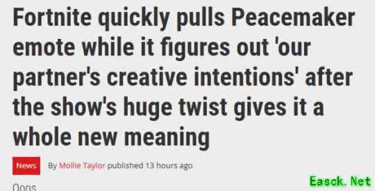 Epic Games日前宣布,已经删除了联动人气反超英美剧《和平使者》经典动态情感道具,具体原因或因为剧透。 ·《和平使者》经典动态情感道具来自美剧《和平使者》第二季的开场场景,主打欢乐搞笑,然而据分析,有设计巨头第二季第6集内容的嫌疑。 ·《和平使者》制作人、漫威高层詹姆斯·古恩没有对此作出回应。 |