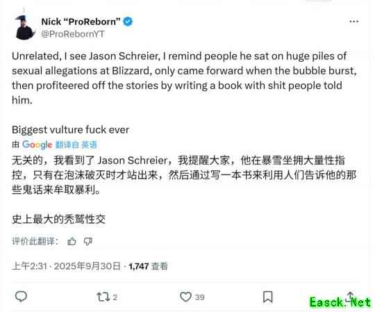 EA 550亿美元卖身 彭博社称将背负200亿债务、网络上骂声一片