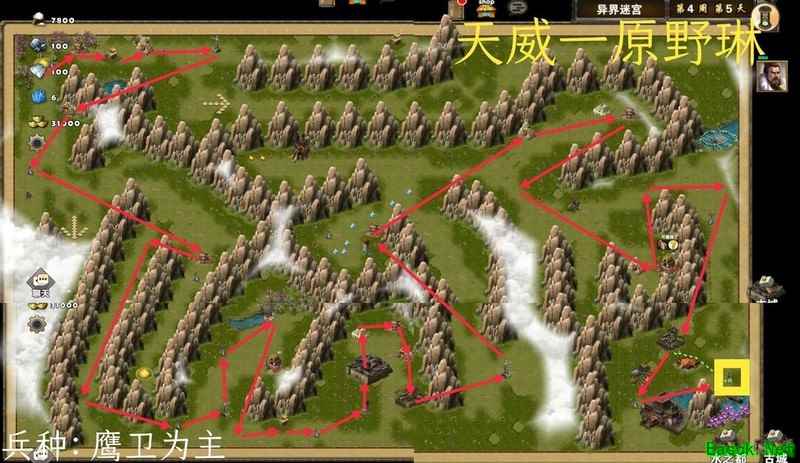 策马三国志异度迷宫挑战开启!本期图文详解异度传说通关打法,推荐贾诩、太史慈为核心,搭配鹰卫阵容与关键红装乌金弓,无损横推全关卡。 推荐使用贾诩或太史慈出战。 英雄出装推荐:朱雀羽扇、天玄道袍、万灵头饰、龙佩、太平要术、猛将鞋和招财猫。 出装推荐:备战卡、金币卡、粮食卡,确保战斗准备充分。 推荐阵容:鹰卫、散仙、朱雀组合 战斗策略:本关核心装备为乌金弓。首关选用太史慈执掌乌金弓,搭配六队鹰卫,全程实现零减员通关。技能配置上使用四级火箭与准备就绪,每日稳定消耗三份木材和石材卡牌。太史慈初始自带六名神射手,升阶为鹰卫后平均分配成六支小队布阵。每次遭遇敌军时,先释放太史慈的大招,随后激活三连胜状态并触发蛮皮增益效果。每支鹰卫在完成两次普攻后都会追加三次额外射击,配合乌金弓的范围爆炸伤害,形成极强的爆发力,使得开局阶段几乎无法被击败。优先向右扩张,占领三处资源矿点,若获得+80移速的随机属性则立即折返向左推进。右侧路径探索数日后发现为死路,因此重心转向左侧。沿途所有可占矿点全部纳入控制,随后南下抵达一处古城,可在此通过守城无伤击退数波敌人,顺势积攒兵力再继续前进。右下区域需等到第六周才会刷新水之都城池,此前第四周探查时仍为空地。补足全部兵力后,等待最后一个毁灭机制出现(此前所有同类单位已在古城守城战中无损清除)。最终的毁灭机制拥有两万余生命值,强度接近胖玄,且为纯近战无随从。此时只需在水之都固守,将其当作固定靶标输出,凭借太史慈与近六百名鹰卫的火力持续压制,虽耗时较长且需开启第二次大招才将其击杀,但最终仍实现全员无损通关。 |