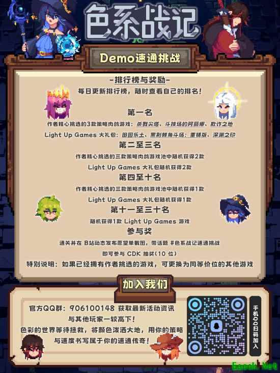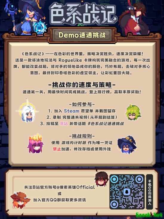 独立游戏《色系战记》今日正式宣布——Demo速通挑战活动将于 10月1日 上午9:00 全面开启!活动同步上线全新预告片,玩家们可提前一睹融合涂地玩法与Roguelike卡牌构筑 的独特魅力。 色系战记速通挑战:点击前往>>> 本次速通挑战将持续至10月25日,玩家需要以最快速度通关Demo第一关,凭借游戏内置计时器登上排行榜,赢取丰富奖品。无论你是策略大师还是竞速高手,都能在这片充满色彩的战场上展现实力。 《色系战记》——策略决定胜负,速度决定荣耀 《色系战记》是一款将 涂地机制 与 卡牌构筑玩法深度融合的独立游戏。每一次出牌都能改变战局,将敌人的领地染成属于你的颜色。巧妙布局,击破对手的核心意图,直至封印吞噬色彩的虚空领主,让彩虹重新照耀大地! 活动说明 参与方式 1.在Steam添加《色系战记》至愿望单并截图留存 2.录制完整通关视频(开局 → 通关 → 结算画面) 3.将视频投稿至B站,带话题 #色系战记速通挑战 并 @像素英雄官方账号 挑战规则 ●使用游戏内置计时器作为唯一凭证 ●严禁加速、修改存档或使用外挂 排行榜更新 ●活动期间每日更新(QQ群 & B站动态同步) ●官方账号将转发与评论优秀投稿,保持互动与热度 奖励设置 冠军(第一名) ●作者精心挑选的三款策略肉鸽游戏(《杀戮尖塔》《斗技场的阿丽娜》《欺诈之地》) ●Light Up Games 大礼包(《田园乐土》《黑荆棘角斗场:重铸版》《深渊之印》) 王牌(第二至三名) ●策略肉鸽游戏池中随机获得两款 ●Light Up Games 大礼包随机获得两款 精英(第四至十名) ●策略肉鸽游戏池中随机获得一款 ●Light Up Games 大礼包随机获得一款 挑战者(第十一至三十名) ●随机获得一款 Light Up Games 游戏 参与奖 ●通关并发布愿望单截图(带话题 #色系战记速通挑战),即可参与 CDK抽奖(10名) 特别说明:若获奖者已拥有奖品,可更换为同等价位的其他游戏。 加入我们 ●官方QQ群:906100148 ●速通专属QQ群:蓝色房间(专属竞速交流) ●B站:搜索“像素英雄officer”获取最新动态 色彩的世界等待拯救 —— 搜索《色系战记》 立即体验! 更多相关资讯请关注:色系战记专区 |