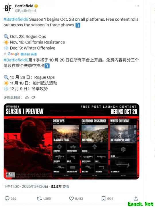 《战地6》第一赛季10月28日开启 加入3张新地图