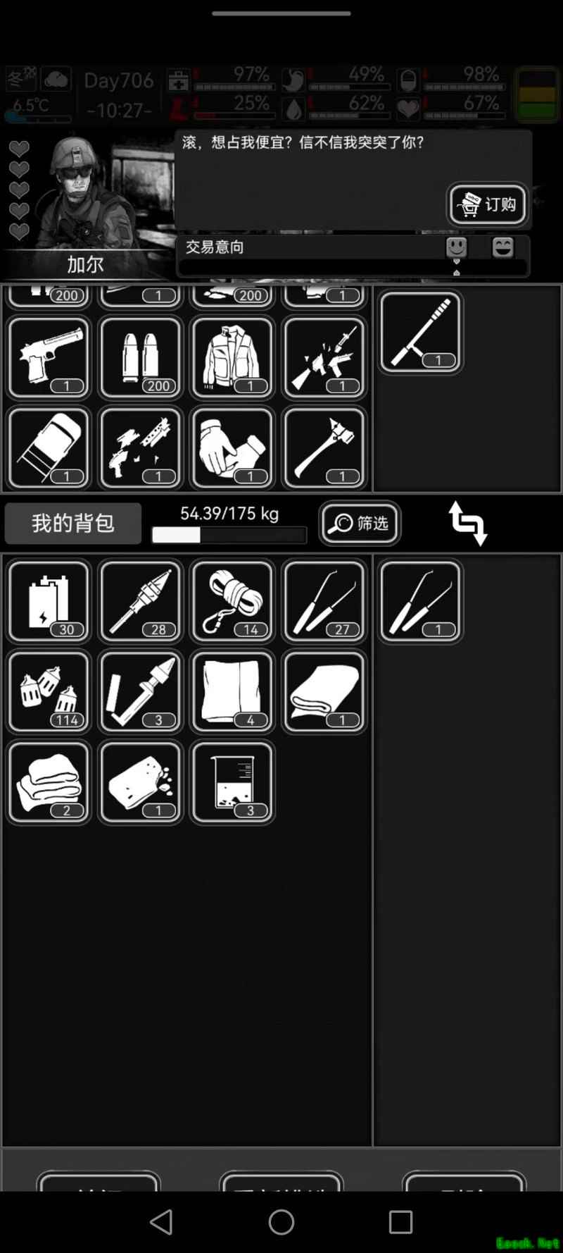 活下去中,商人的喜好直接影响交易性价比。本文详解六大商人偏好与商品特点,助你高效囤货、省金省力,合理利用资源活下去! 1.加尔 深受玩家喜爱的热门商人之一 他的商品质优价低。 他素质不错 咳咳,说远了,加尔那多数物品降价,唯有三级医疗弹还算不错。 前期武器虽强但价格过高,实用性低;后期虽买得起,却已无太大作用,整体来看性价比不高。 2.米莲尼 从照片就能看出是个十足的吃货无疑了。 尽管食物定价略高,但因其本身价值有限,获取好感主要靠购物和订单,关键还是看高级装备。他还会出售一些制作难度较高的材料,对中后期发展有一定帮助。 3.胖子 他刚到时就明确表示只收取变异血,这通常是黑骑成员才会收集的杀戮凭证。 4.肯特 他没什么特别之处,卖的东西和胖子类似,偶尔出售高级维修包,虽无特殊爱好,但给些七血就能让他清空库存。 5.爱德华 别听他嘴上说的,实际上一瓶水能换好几块金子,简直和加尔一样黑心。 此人贪财好利,痴迷珠宝黄金,前期可交易食物,后期毫无用处,无需刻意讨好。 6.贾斯汀 身为药商竟怀此愿,实出意料。 武器价格上涨,日常小病可自行处理节省开支,若病情严重,则应及时就医,切勿吝惜费用。 |