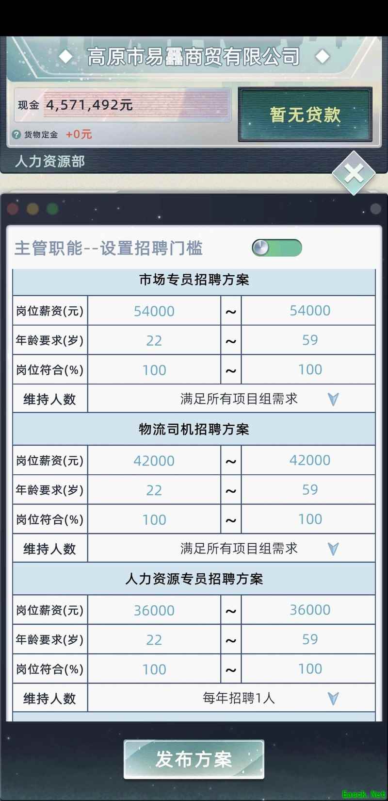 想用500万在当代人生里逆袭当老板?本期手把手教你从零开公司,四年躺赚5亿! 创业分四步:筹备起步、运营发展、成熟稳定、收益回报。 初期可考虑租赁容纳50至100人的场地用于开办公司。 创业首年,招聘三位能力达标的市场专员与司机,统一按最低薪资标准支付。 第二步,集中精力洽谈雀巢项目,全力提升货柜容量,同步优化并升级组织架构。 项目谈妥即可顺利进入下一年。 次年架构调整完毕,立即聘用秘书与物流主管,薪资按最低标准执行,并依我所示图纸进行布局安排。 次年便如此操作,若物流主管或秘书离职,先尽力挽留,不成则重新招聘,并将薪资调至最低标准。 项目谈妥后只需关注签约事宜,留意合作方资质与条款细节即可。 当雀巢合作进入第三阶段,所有货架完成第二阶段升级,恭喜步入发展中期,请及时优化组织架构以适应新阶段发展需求。 中期可招聘市场与人力总监,能力选100,薪资调至最低,按图中设置操作即可。 物流车辆升级现已开放,明年将增加车辆数量,需及时招满司机,能力均保持100。司机与总监薪资可根据公司收入调整,也可统一调至最低标准。 中期发展时,市场总监将自动签约项目,需重点关注货架升级;合作提升时,应及时增加货架数量以适应需求。 请注意所谈项目需达到数字指标,避免出现红色数据,确保全部为蓝色。 当项目收入上千万时,已进入发展后期,意味着你已积累了一定财富。 接下来将重点进行相关配置。 可以尝试担任财务总监,或将公司利润转入个人账户操作。 当你与雀巢的合作进入第四阶段,货架合作全面完成并全部开启后,便进入被动收益阶段,公司年收入可达5亿至8亿元。 以上便是500万注册公司的完整流程,希望对大家有所帮助。 |