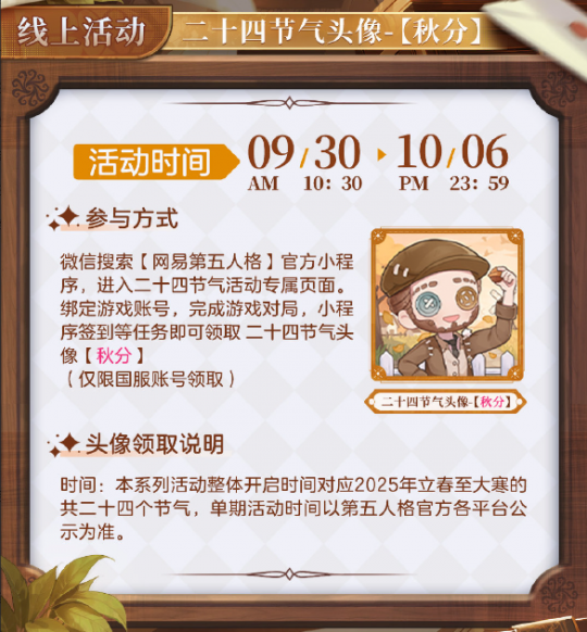 秋分至,秋意浓《第五人格》二十四节气演绎录-【秋分】篇即将开启