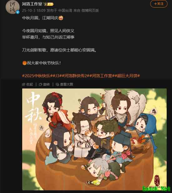 河洛工作室发布中秋贺图:愿诸位侠士都能心安圆满!