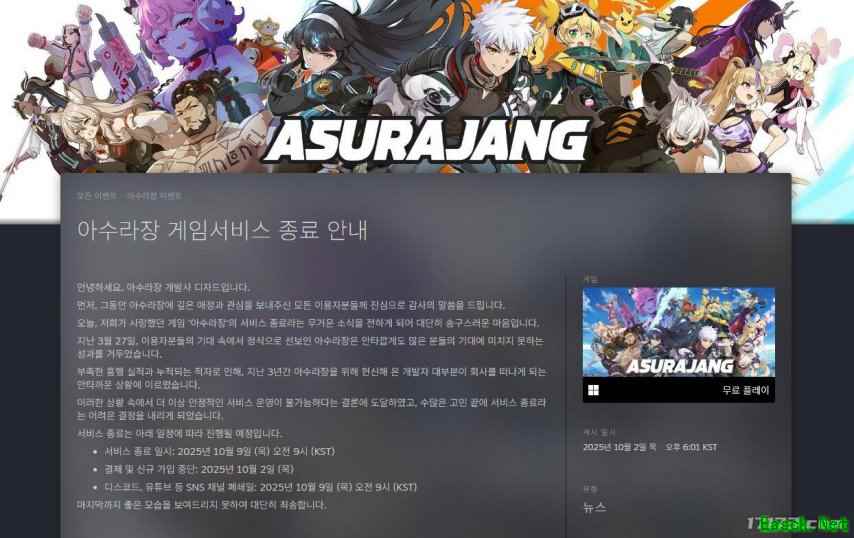 近日,随着韩国游戏《美少女梦工场 : 预言之子》开发团队全员离职,开发商D-Zard旗下另一款游戏《修罗场》(ASURAJANG)将于10月9日停运。 D-Zard于近日通过《修罗场》Steam页面发布了停运公告。《修罗场》是一款采用俯视视角的动漫风格33人大逃杀游戏,以结合普通攻击、特殊攻击、闪避反击等多样技能打出连招的操作手感,与爽快的KO演出为特色。该作自3月27日正式上线后,虽经多次更新试图挽回用户数量,但自8月28日后更新日志便再无记录,运营陷入困境,最终决定将于10月9日终止服务。 D-Zard方面表示:"由于惨淡的营收表现与持续累积的赤字,三年来为《修罗场》倾注心血的开发人员大多已离开公司,这般境况令人痛心。"并表明因无法维持稳定运营,最终决定停运。 此外,D-Zard的另一项目《美少女梦工场 : 预言之子》在开发团队离职后,正在原项目负责人孙石虎PD的主导下推进向其他公司的移交工作。 《修罗场》将于10月9日终止服务,社区及SNS频道也将在同日关闭。《修罗场》目前已停止游戏内付费与新用户注册。相关详细信息可通过Steam页面查询。 |