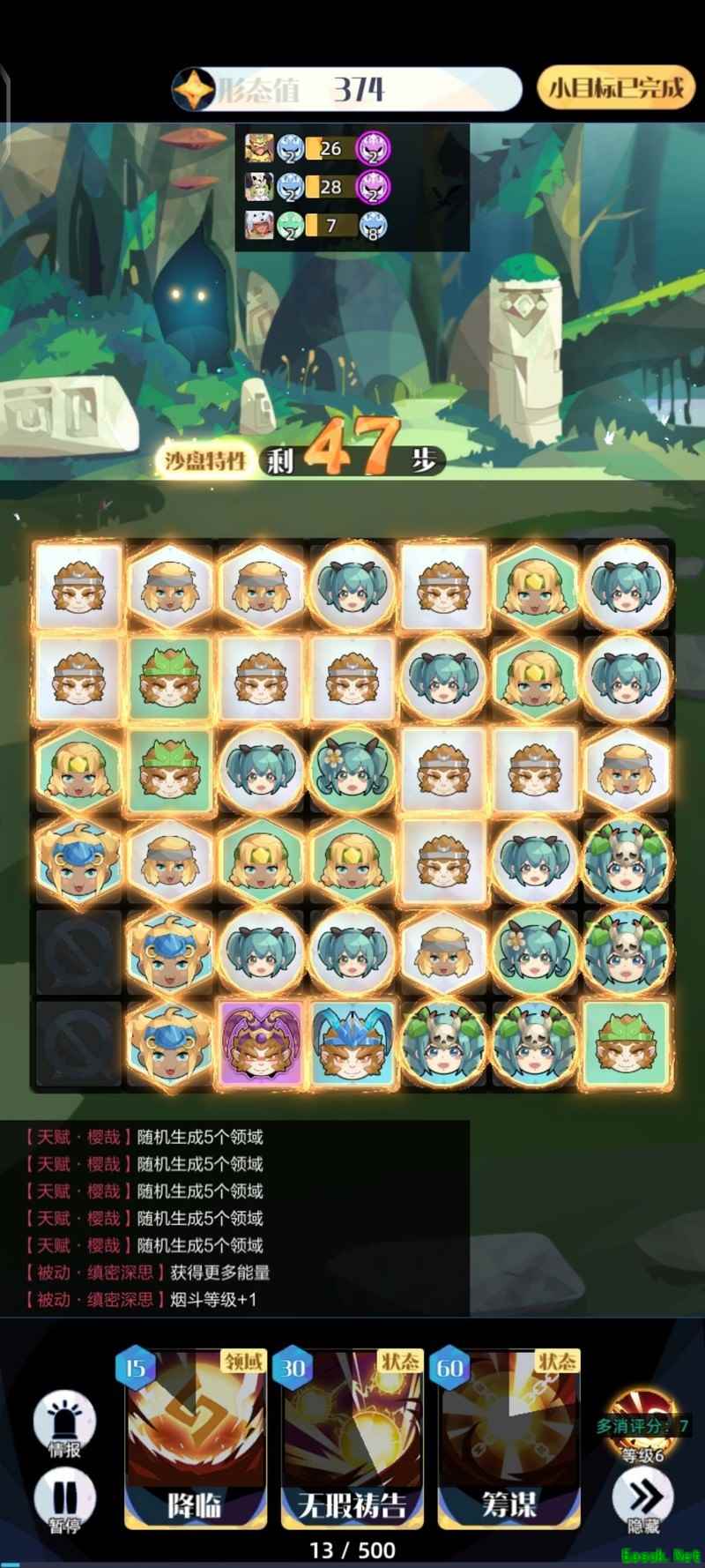 召唤与合成2樱哉沙盘现版本超详细升级攻略,一看就会!掌握核心多消思路,合理规划摆盘与能量,轻松达成高盘数高分通关。 樱哉沙盘当前版本消除策略详解 优先通过多次消除紫色块推进,后期转向橙色块的连消操作。当紫色以下颜色保留两组白色用于保底时,可进行三次消除。核心在于合理控场,确保能量不溢出且主力位置稳定。8至10级阶段若能达成四蓝消除,则优先执行,以节省祷告所需能量,增加摆盘机会。摆盘始终为最高优先级操作。 21盘以上争取达成三个四橙,首盘尽量实现四橙多消并后拖;紫色优先四合,不得已时三合;橙色尽量四合,若条件不足则完成两个四橙即可。 技能:降临、筹谋、祷告 A为主力 四级开局刷领域快速升级。 五级时先计算A数量是否足够三蓝合成紫,足够则直接合成,不足则下轮再议,同时可用四绿或五白升级,也可赌掉落,注意保留多消以保障区域安全。 若上轮未出A紫,本轮需摆出B5蓝与C6蓝阵,同时准备4绿或6白用于升级,为后续升至11和12级打好基础。 掉落形成B5蓝与C6蓝阵,所示。 7级:注意走位,被动A4绿升领域 8级时优先选择被动A3,蓝量充足则带祷告,位置佳可考虑四蓝 9级时优先选择被动A3,蓝量充足则带祷告,位置佳可选四蓝。 十级选择被动A3,优先四蓝加祷告,位置佳时更优。 11级:被动B5蓝阵强化提升 12级时升级被动C6蓝阵,优先刷取高掉率的领域并调整站位。此阶段最多耗9步,回能使用A技能,升级前需精准计算能量,保持在470以上且不溢出,确保在能量耗尽前升至15级。后续有两种分支路线可选。 13级时,若C6蓝被动升级至12级后领域不足,需观察A级紫卡分布,在领域中优先寻找可双消的单位。将A3紫祷告升至13级可大幅增加领域数量,尽量避免使用降临技能,随后进入固定布阵阶段。当12级升完且领域足够时,可直接提升A4紫卡等级。 14级:B4紫装配祷告强化提升 15级:C5紫装配祷告提升战力 在能量即将耗尽前,若不打算冒险,应提前布置一步双多消阵型。当能量充足时,先使用降临技能寻找多消机会,再执行一步双多消,通常可达成满领域效果。若形势受限,可用降临配合领域与祷告组成三重多消。第三盘优先处理紫色方块,尽量凑齐五组。最后阶段需精心布局,用精英及以上怪物横向排满,触发全屏爆炸。若局势不利则果断重开,确保摆盘无误,22轮内稳定达到1.9以上评分。 |