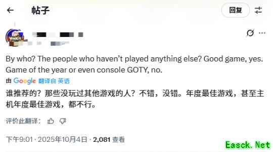 此前我们报道过,2025年英国金摇杆奖提名名单正式公布。本次,《光与影:33号远征队》获得6项大奖提名,领跑全场。其他获得多个提名的大作还有《空洞骑士:丝绸之歌》、《死亡搁浅2》、《天国拯救2》和《羊蹄山之魂》。 值得注意的是,《怪物猎人:荒野》也获得了主机游戏年度最佳提名,将与《咚奇刚:蕉力全开》《死亡搁浅2》《马里奥赛车:世界》《索尼克赛车交叉世界》以及《羊蹄山之魂》展开竞争。 近日,《怪物猎人》官方在社交平台X上发文庆祝入选,却遭到玩家的质疑与吐槽。有玩家表示:“《怪物猎人》一直是我最喜欢的系列游戏,但《怪物猎人:荒野》中的性能问题意味着它不配得上这个称号。” 也有玩家直言:“这玩意儿能在主机上运行还真走运。PC 上的表现却糟透了,毕竟都发布 8 个月了。而且 12 月之前都没指望能修复。在我看来,这游戏配不上年度最佳游戏。” |