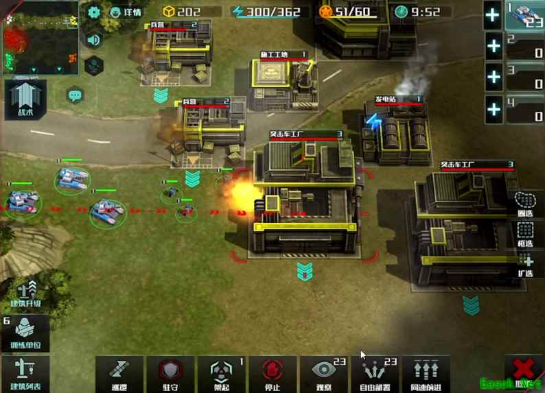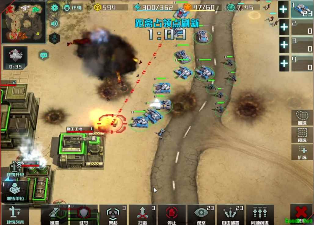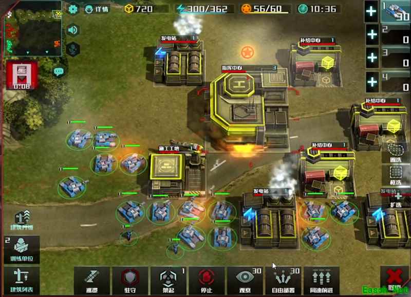 果不其然,游戏一开局就充满了火药味,双方都是迅速建造建筑、快速出兵争夺资源点,在前期就开始了零零碎碎的小规模会战。