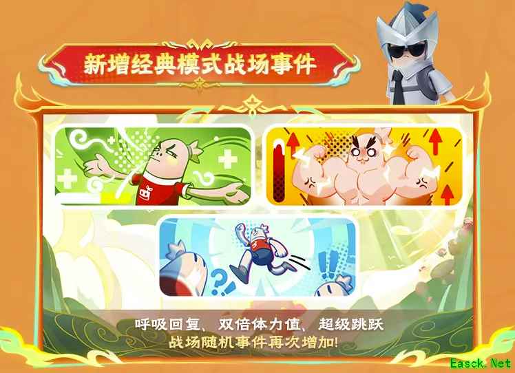 全新跳跳乐模式——暴跳西游路将于1月17日开放,不拼抢、全看跳跃技术哪家强。模式内置九大超难跳跃关卡、每大关更有九小关,总共九九八十一关正对应西游劫数。每一关都是对精准操作的考验,堪比西游取经路,如果成功通关更有限定皮肤、限时称号等丰厚奖励,让你不虚此行。如果你更热衷展现枪法,那么将在2月7日开放的个人激斗模式则是你的不二之选,投身12人战场内不断复活、互相淘汰并获得分数,时间结束后依照分数进行排名,证明谁才是最强的小肠肠。 如果你是热衷经典模式的香肠老玩家,新增的战场事件一定会让你玩的更开心。本赛季的经典模式中,将新增“使脱战的肠肠自动回复体力值”的呼吸回复事件,令人不由得想起另一款呼吸回血的FPS大作;双倍体力值事件会让肠肠变得更强壮、体力值直接翻倍;“超级跳跃”事件更是让肠肠普通跳跃和二段跳跃的高度翻倍,且没有落地僵直,让本就无限搞怪的战场变得更加欢乐。