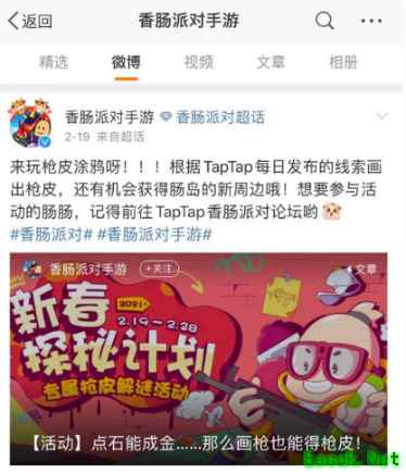 活跃的社群UGC:玩家视频花样百出 永远有你想不到的“吃鸡”角度 《香肠派对》给了玩家充分的个性化操作空间,而这正是UGC(用户原创内容)创作的绝佳素材源泉。 类似的例子如《人类一败涂地》和《糖豆人》,都是UGC内容十分活跃的典型游戏,前者允许玩家添加自制关卡并与他人分享;后者每个关卡的通关方法都不相同,也无统一模式。这两款游戏的玩家们,在网络上贡献了大量的爆笑奇葩过关视频。 如今《香肠派对》的玩家们有更多奇奇怪怪的问题可以探讨:比如到底是喷火巨龙更难打还是机甲更难打?手拿圣剑一刀999,能否轻松单挑冲锋枪?传送大炮不仅可以用来传送,还可以用来轰死对方?怎样利用野外啵啵跳的更高?……打开b站、TapTap等平台,各种视角清奇的玩家视频相当活跃;此外,官方账号不定期发起的手绘征集等玩家活动,进一步推动了同人图、原创表情包等UGC内容的输出。