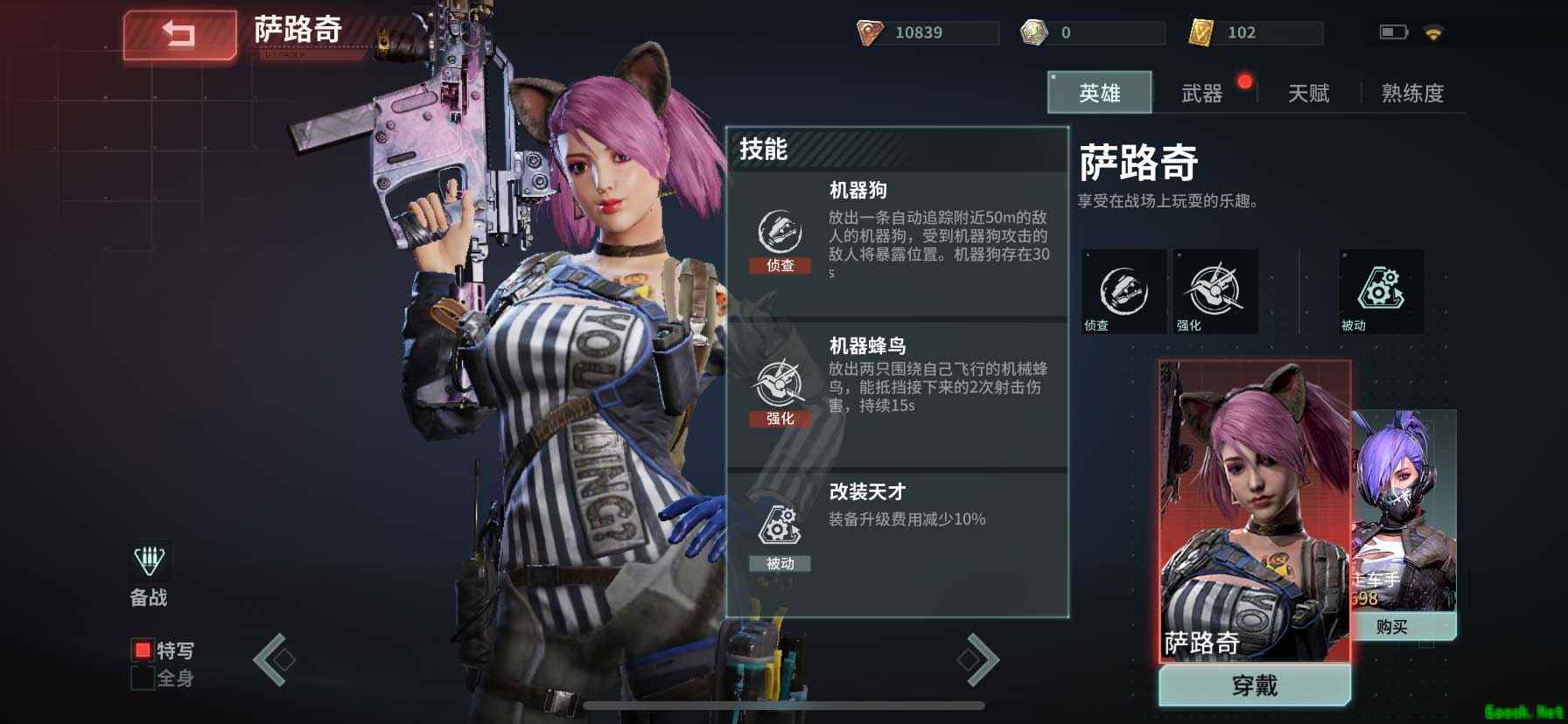 【萨路奇:时刻享受战斗的乐趣】 作为战场上最可爱的双马尾,萨路奇始终享受着在战场上玩耍的乐趣。她性格机灵古怪,平常就爱鼓捣一些科技产品,也将其用于战斗之中,其被动技能能够让装备升级费用减少10%。 她的侦查技能可以主动释放出一只自动追踪附近敌人的机器狗,受到机器狗共计的敌人也将暴露其所在位置。在据点争夺中,萨路奇能够提前召唤小狗,作为队伍的“前哨兵”,快速了解敌人的动向,同时吸引敌方火力进行持续骚扰。