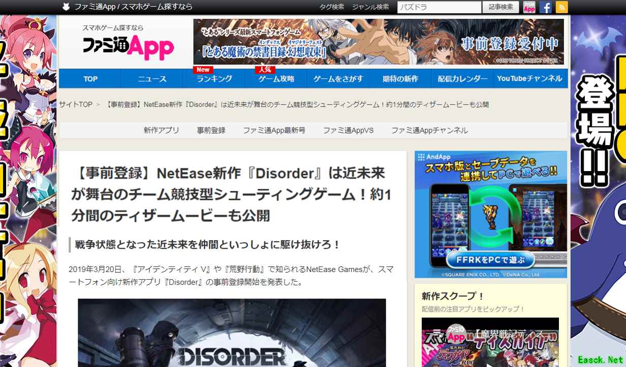 【海外媒体报道 设定引发关注】 《Disorder》曝光后受到了许多海外媒体的关注和报道。4Gamer、Gamezebo、fami通、Gamewith等美国、日本的主流游戏媒体都对产品的宣传视频和场景原画进行了介绍,并对游戏的题材和设定产生了浓厚的兴趣。