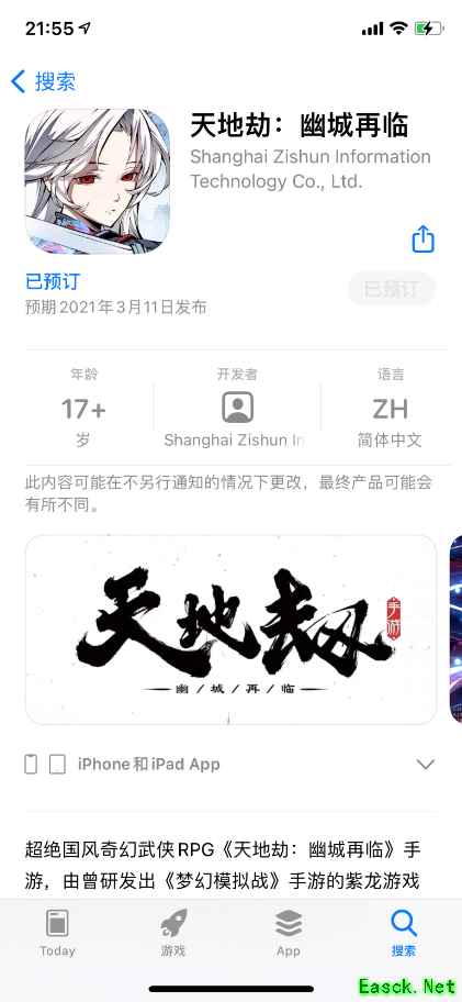 当《天地劫:幽城再临》手游在App Store正式公测上线时,会第一时间自动下载到您的iOS设备中。 当您显示如下界面时,那表示您已经预订成功↓