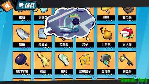 万物皆可为武器 咸鱼突刺拖鞋打脸 身为一个乱斗竞技游戏,除技能外,武器也是决定胜败的关键。但在这个以拿人头为第一准则的模式里,玩家开局总是两手空空,武器呢全靠捡。 值得一提的是,和常规意义上的武器不同,这里的武器都是日常生活里常见的物品。比如自拍杆,不仅可以照亮你的美,还可以拍打别人的嘴;比如煤气罐,不是拿来做饭用的,而是当炸弹扔出去的。