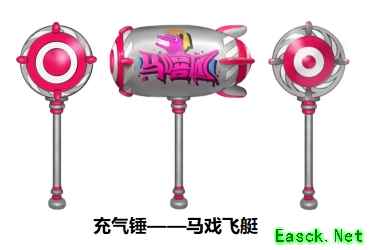 充气锤也穿上了漂亮的新衣,整个锤子变成了飞艇的形状,上面印着马嘻团以及马男的头像。随着马戏飞艇的到来,难道马嘻团要开始表演了吗?