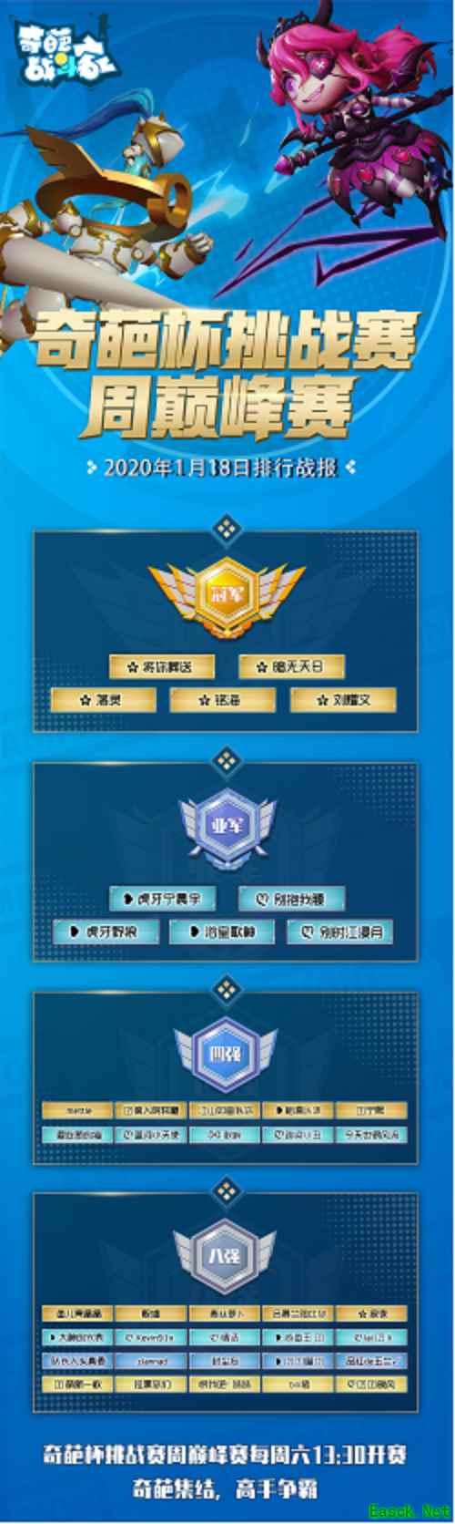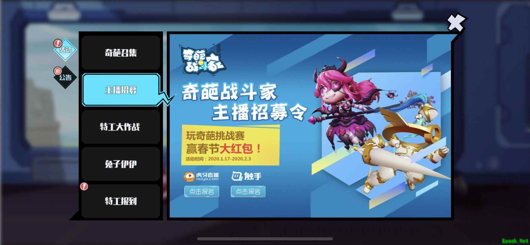 首次巅峰赛排行榜 重磅平台主播招募,加入巅峰赛场 《奇葩战斗家》携手知名直播平台虎牙、触手,带着大额京东卡红包等礼品,一同开展新春主播招募计划,即日起到2020年2月3日,都可以在相关直播平台报名。不管你是玩转各个游戏赛场的高手,还是热爱游戏的萌新,都可以在《奇葩战斗家》中找到十足的乐趣。这个春节,带着水友们在奇葩一起过春节。