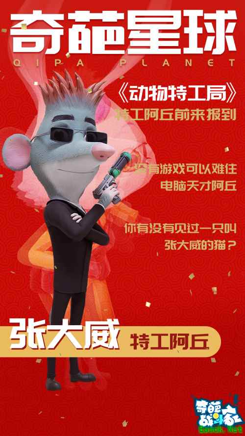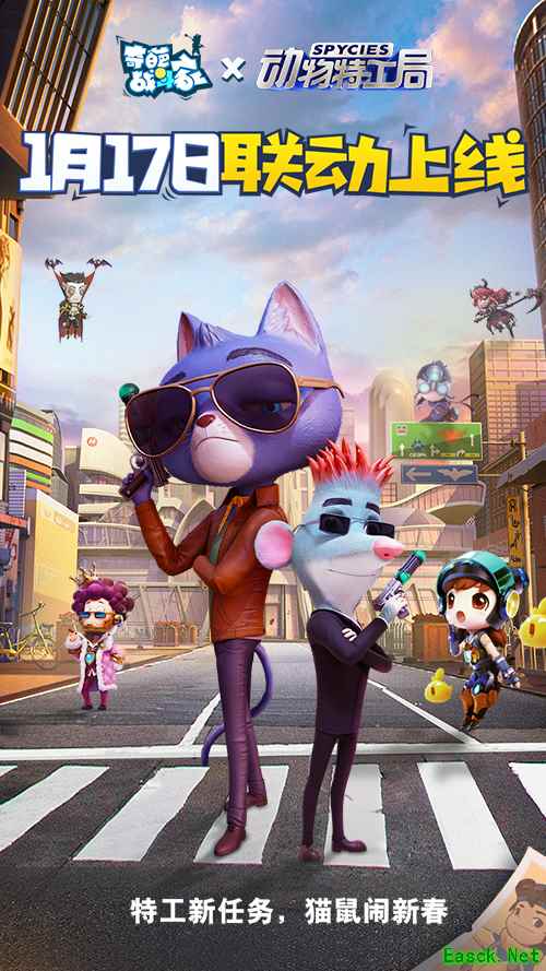 (《奇葩战斗家》x《动物特工局》联动) 特工新英雄&新皮肤,猫鼠兄弟特工伊伊前来报到 作为《动物特工局》中最强的特工组合,他们各有所长,互补其短,虽然现在看起来其乐融融、相得益彰,实际上他们也曾经互不认可。喵特工张大威虽然点满了特工技能,却傲娇成性,还常常为了完成任务而闯祸;而老鼠阿丘虽然呆萌迟钝,但重情重义。在因缘巧合下,他们意外结识,并陷入惊天阴谋,最后在他们打开心结,携手合作,在其他优秀的特工配合下,成功破案,他们也因此收获了彼此的友谊和信赖。现在他们又携手接下来自《奇葩战斗家》的新任务!