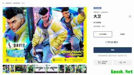 来自《赛博朋克:边缘行者》的男主角,大卫·马丁内斯喜迎1/4 比例雕像化,分为豪华特典版和普通版,其中豪华特典版售价为:1199美元(折合人民币约8536元)普通版售价为:999美元(折合人民币约7112元)特典版包含额外的配件。 点击前往商店>>> 商品简介: “那是我的梦想。说实话,其他一切都不重要。” ——大卫·马丁内斯 凭借着即使在残酷的雇佣兵世界和注定命运的桑德维斯坦中也能闪耀的沉稳决心,《赛博朋克:边缘行者》中的大卫以1/4比例加入Real Elite Masterline系列! 如果大卫和他的同伴以《赛博朋克2077》的CG风格重现会怎样?这一大胆的概念最终以高精度雕塑的形式呈现。这个雕塑捕捉了大卫在夜之城地下世界中不断攀升时不屈不挠的姿态,将游戏的写实风格与他最初的动画设计完美融合。 正如CD PROJEKT RED制作人Saya Elder在Prime 1 Studio的Next Level Showcase XIII上所强调的那样,雕塑和涂装忠实地反映了《赛博朋克:边缘行者》的世界观,甚至包括最细微的细节。大卫侧分的发型线条简洁,他那充满野心和纯真的表情,以及他母亲标志性的黄色夹克,都融入了动漫元素,同时又增添了新的魅力。 特制底座的设计灵感源自传奇酒吧Afterlife。霓虹灯采用LED和反光漆渲染,搭配风化的贴纸和压碎的易拉罐,营造出夜之城深沉忧郁的氛围。 豪华版包含各种可互换部件,带来丰富的展示选择。您可以选择细微的头部倾斜,或是他拔出武器时露出得意的笑容。搭配脉冲星和两个头部支架,您可以根据自己的想象重现各种场景。 此版本还包含独家赠品九尾动力突击步枪,让您拥有一把爆炸性武器,为战斗带来强大的优势。 快把这位年轻的边缘行者加入您的收藏吧!这款游戏采用《赛博朋克 2077》的美学设计,大卫可以与露西和丽贝卡搭档,组成一支强大的队伍。 规格: 豪华特典版: 赛博朋克:边缘行者主题基地,配备 LED 照明 三个可更换的头像(严肃、张嘴、微笑) 三 个可更换的左臂和口袋部件(手插口袋、举起枪、枪指向前方) 一 个脉冲星 两 个头架 一 个九尾 [额外部分] LED供电方式:待定*请根据最终供电方式准备电池、USB线或其他必要物品。 普通版: 赛博朋克:边缘行者主题基地,配备 LED 照明 LED供电方式:待定*请根据最终供电方式准备电池、USB线或其他必要物品。 本文由制作发布,未经允许禁止转载。 |
