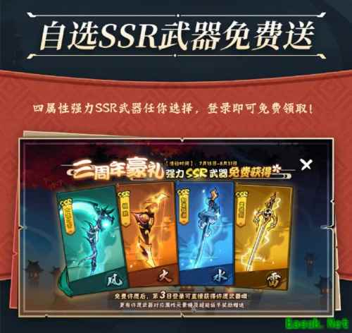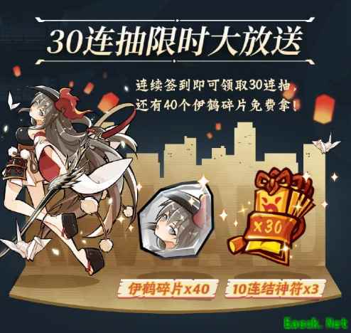 本次「鹤舞燎原」版本,除了全新忍者伊鹤加入战场以及策略共斗玩法「天权演武」上线以外,忍者总部还准备了多重福利给忍者们。上线即可领取全民SSR武器四选一及连续登录可获得3*10连结神符、40个伊鹤碎片等福利。《忍者必须死3》资料片「鹤舞燎原」已经正式上线,何不如一起加入忍者团队,尽情跑酷呢! |