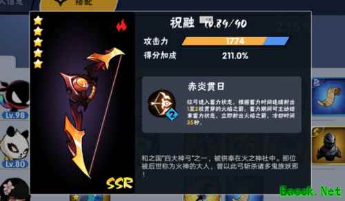 游戏发展两年时间里,一共推出了22把SSR的武器,他们各有优劣,并且根据风雷水火四个不同的元素能够发挥不同的作用。 其中大家公认最好SSR武器就是祝融了,听名字就就知道这是一把火属性的武器,其特技为:拉弓进入蓄力状态,根据蓄力时间连续射出1至4枚贯穿的火焰之箭。蓄力期间可主动结束蓄力状态,立即射出火焰之箭。祝融可以算是T0级别的武器之一,伤害爆炸,射速和操作简单,单兵作战能力爆表。然而这把武器极其稀有,极难获得。