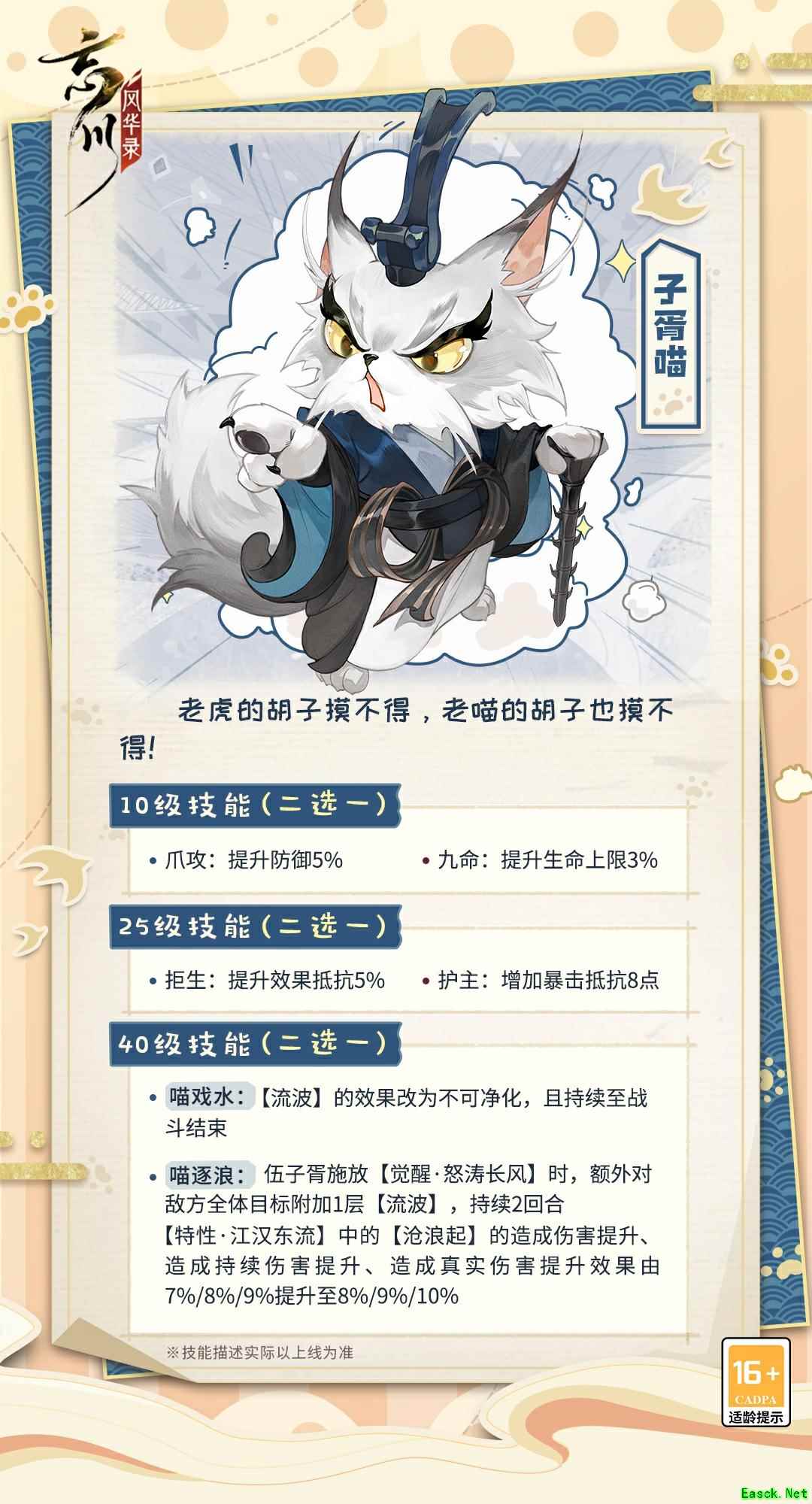 老喵的胡子摸不得!《忘川风华录手游》全新地品名士伍子胥技能曝光,子胥喵来袭!