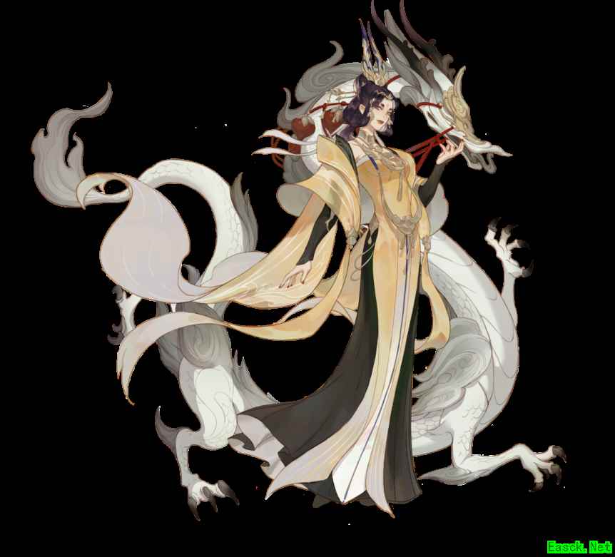 设计元素:金凤、白龙 武则天头戴点翠凤鸣发冠,华丽的发髻之上蓝金映衬,凤凰振羽眼神睥睨。流云纹绣凤袍勾勒出妩媚的身姿,利落的护手和黑色劲靴在丰润飘逸中透着杀伐果断的决绝。眉间一簇凤火花钿灼灼绽放,搭配橙红色系的眼妆、女王色的口脂和霸气时髦的桂叶眉,张扬着一代女皇的真国色。她身后的白龙身环蟠龙,洁白灵动,意喻武则天所修“天枢柱”,标志着武周帝国的盛世王朝。 首测预约进行时,忘川使者虚位以待 |