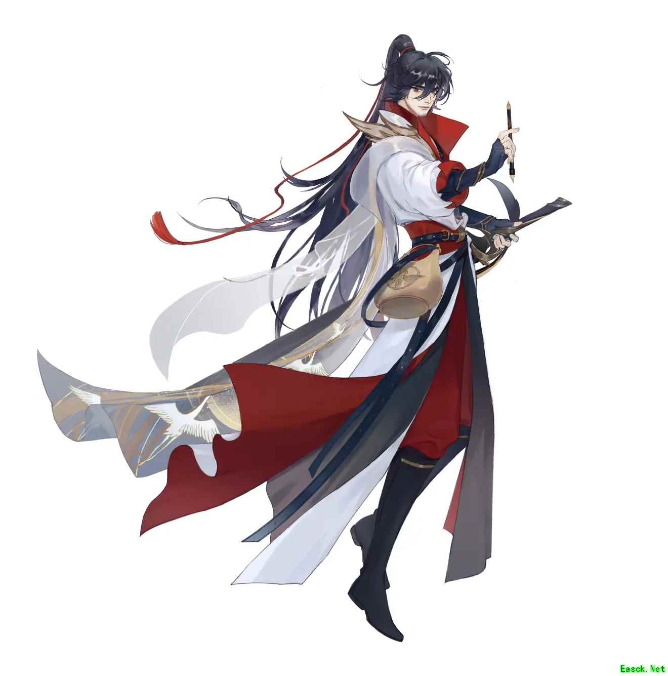 左手持剑,一把龙泉剑行走江湖快意任侠;右手挥毫,一支鸡距笔高产如风诗句万千。尽兴处打开腰间的兽皮酒壶,酣畅痛饮。飘逸的披风上仙鹤振翅,恣意洒脱须尽欢是李白的座右铭。一抹性感的小胡茬是碎叶城的故乡印记,也是阅尽山河的风霜证明。 曹植——洛水之畔不染尘