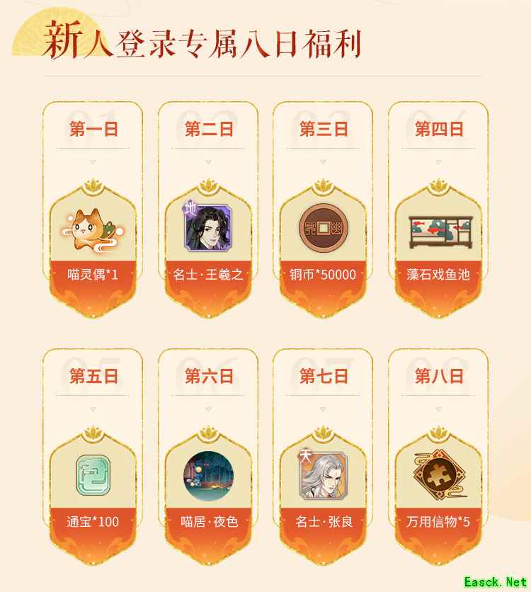 登录又签到,好礼领不停!今日公测开启后,玩家“使君”在三天内可每日领取喵灵偶5只!每日登录还可领取【新人专属八日福利】,参与【每日签到】,还可领取小鱼干、灵石、邀请函、礼物盒、大道天书、桃源木、铜币、通宝、喵灵偶等九种好礼!