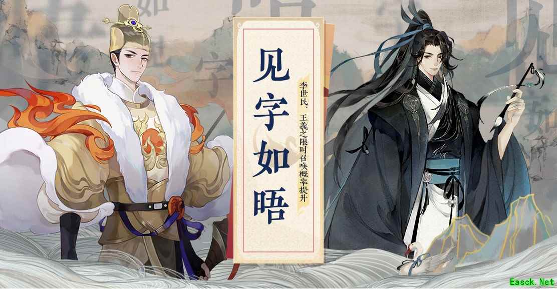 活动卡池二【见字如晤】 天品名士·李世民、地品名士·王羲之获取概率提升,各占本卡池内所有天品名士出率的30%以及所有地品名士出率的30%,此外本卡池每抽得3张天卡,其中必含[李世民]!