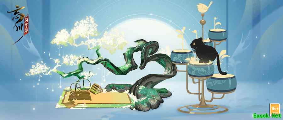 《忘川风华录》手游全新家具【阶前玉树席】、喵玩具【踏月折桂鼓】登场!
