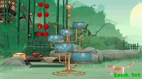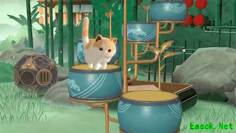 踏月折桂鼓 忘川名士喜好音律,便也精心为猫咪们打造排鼓。每当猫咪在鼓上嬉闹,排鼓便发出不同的声音,穿梭在桂枝间的猫咪化身成为踏月的仙兔。