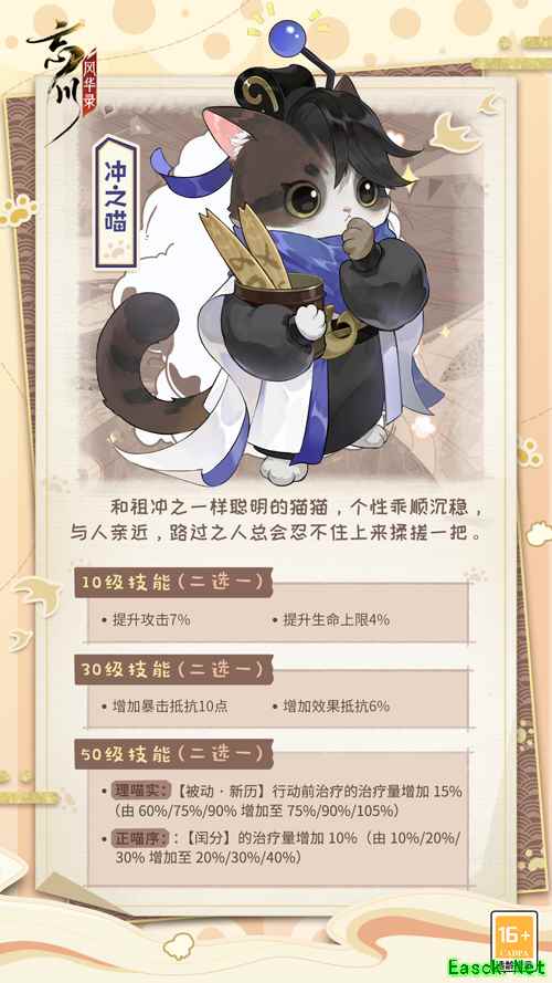喵中集智者,博闻广学识。 若称“喵中智慧星”,冲之喵当仁不让,个性乖顺沉稳,乐于解答他人请教的它,马上就将入住喵居啦,玩家“使君”大人可不要忘记提前准备小鱼干来迎接它!