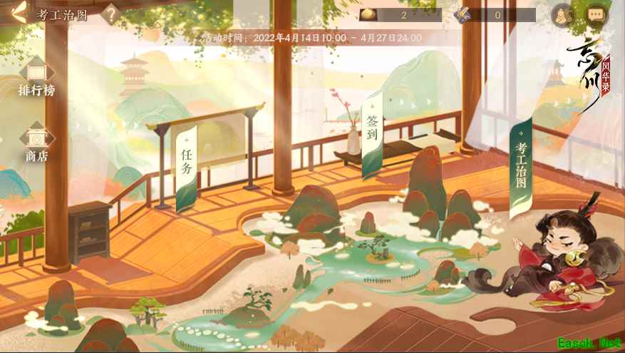 活动时间:2022.04.14 10:00:00 ~ 2022.04.27 23:59:59 活动内容: 玩家“使君”可通过每日签到获取门票参与活动,完成游戏和指定任务获得代币,兑换商店中 的奖励。在4月14日、4月17日、4月20日、4月24日依次开放4个不同地图的关卡,取每个关卡的最高分总和计入排行榜。活动结束时,排名前100的玩家可获得对应排名的排行榜奖励!