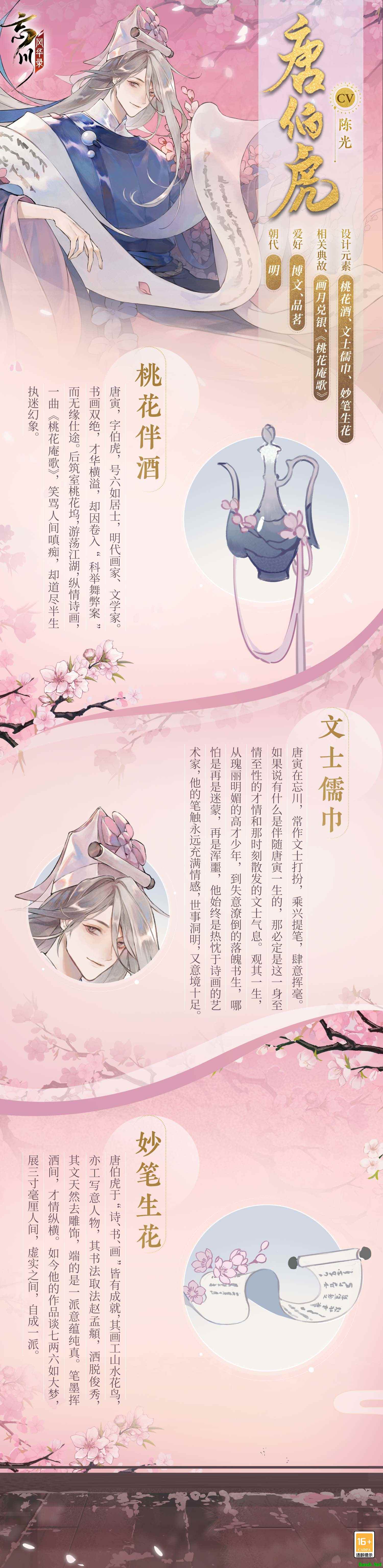 我有桃源,故人万千!《忘川风华录》全新天品名士【唐伯虎】即将入住忘川,全新版本【妙笔生花】即将风华上线!各位玩家“使君”快快下载游戏,与千古名士共居桃源吧!了解更多活动信息,请关注官方自媒体(官方微信公众号、微博@忘川风华录手游)后续新闻。 |