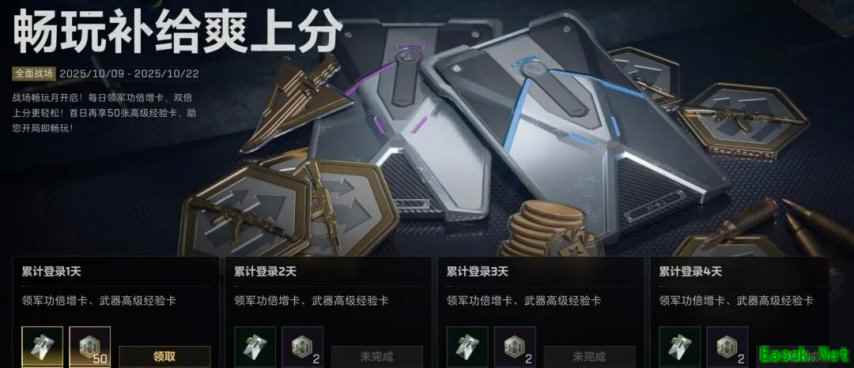 下面全部是全面战场模式的活动 畅玩补给爽上分 累计登录天数获得军工卡和经验卡。