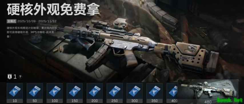 赛季活动里硬核外观 累计局内游戏时长换取物流凭证和枪皮,最终奖励是mp5皮肤。