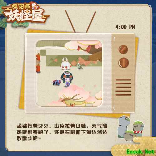 孟婆拖着牙牙,山兔拉着山蛙,天气酷热就别赛跑了,还是在树荫下溜达溜达散散步吧。 有家主陪伴的一天,小妖怪们过得真是忙碌而又充实~ 还没有入住的家主们可以前往《阴阳师:妖怪屋》官方微博,每天都有新的活动可以参加,还有机会获得激活码哟。 |