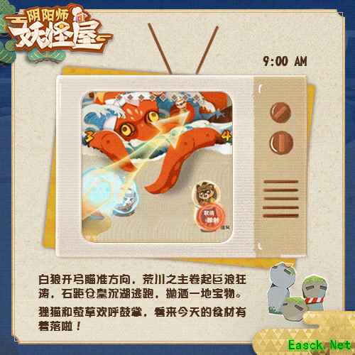 白狼开弓瞄准方向,荒川之主卷起巨浪狂涛,石距仓皇沉湖逃跑,抛洒一地宝物,狸猫和萤草欢呼鼓掌,看来今天的食材有着落啦! 【12:00 AM 丰盛的午餐】