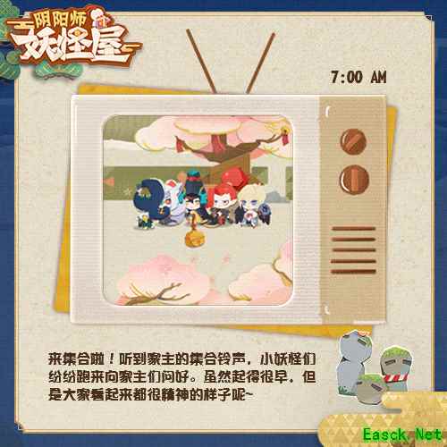 听到家主的集合铃声,小妖怪们纷纷跑来向家主们问好。虽然起得很早,但是大家看起来都很精神的样子呢~ 【9:00 AM 组队打石距】