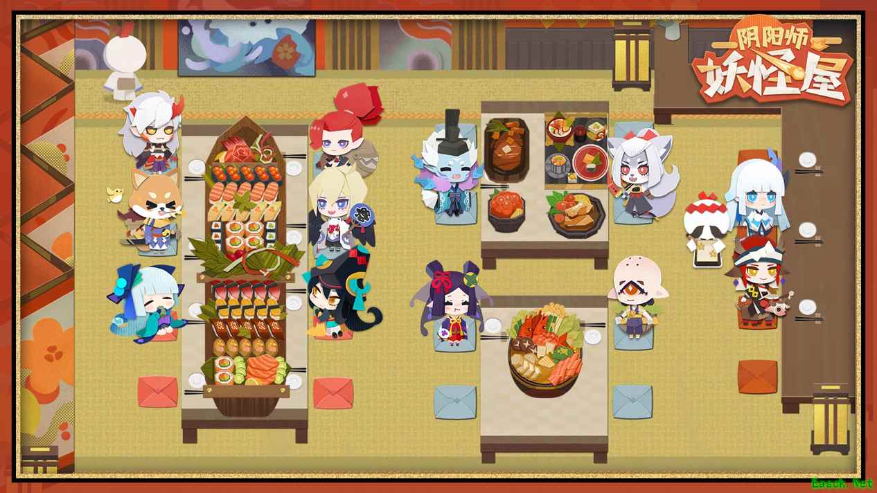 【日夜相伴,全景沉浸式互动体验】 走进庭院,家主们会发现每时每刻都可以感受到不一样的趣味。早上睡个大懒觉起来,走到“美食屋”,为心爱的崽们做顿丰盛的午饭。玉子寿司、稻荷寿司、鲶鱼饼、炸虾天妇罗……每个小妖怪喜欢的食物都不一样,大家得细心观察他们的偏好,投喂他们喜欢的食物,才能让他们获得好心情哦!