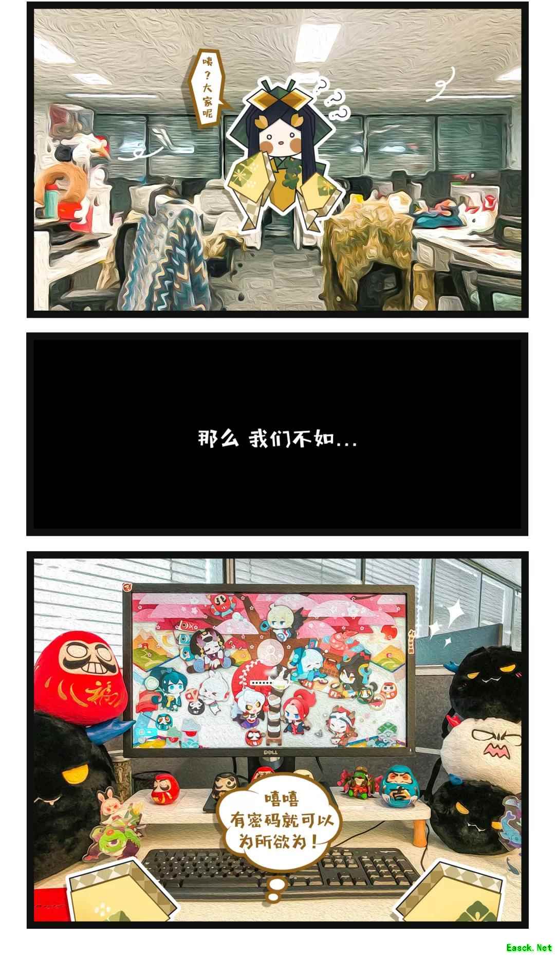 原来在美术组摸鱼的卡米酱,看似在为大家服务,却在大家不在的时间趁机进入组员的电脑桌面,到底美术组资料在哪呢?但是密码在手,想必素材也不会远了。说不定其中还有关于安卓计费测试的秘密,让我们一起来期待接下来的爆料实况转播吧。 |