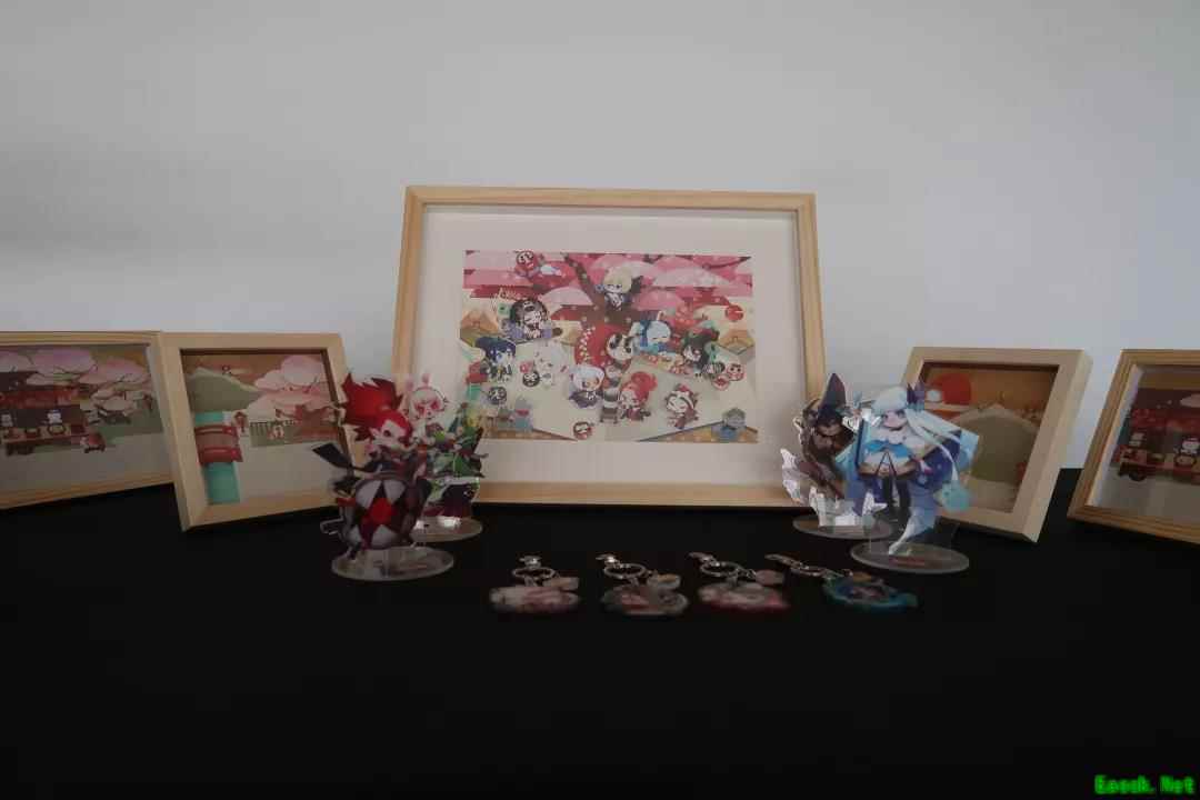最后来一张明亮哒齐齐整整哒全家福~ 特色相框+叠纸公仔,再添上庭院的美景,妖怪屋就从屏幕里搬到现实啦。还有式神亚克力立牌和弹珠形态的亚克力滴胶挂件,全都给家主们安排上!不知道家主们还期待有什么样的周边在日后推出呢? |