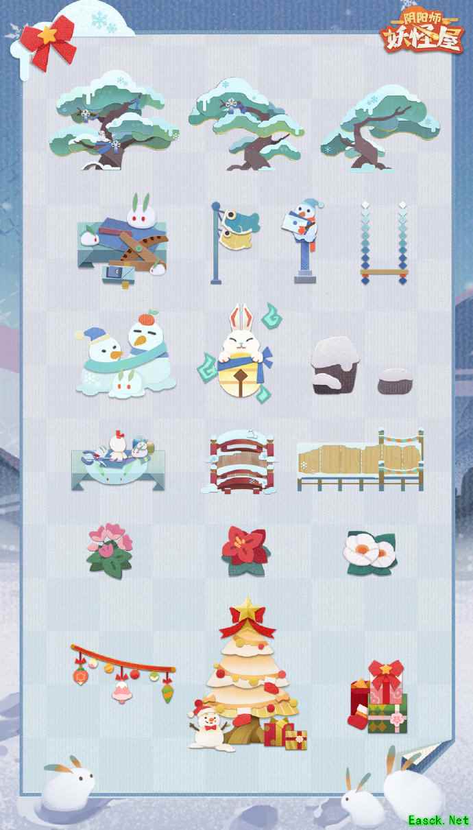 皮肤获取方式:将于12月23日维护更新后上架皮肤商店,可通过购买获取 家主大人快给小妖怪们购置新衣,以新的面貌来一起庆祝即将到来的双旦佳节吧! 【白雪纷飞,冬日庭院换新装】 冬日来临,白雪纷飞,不仅小妖怪,连庭院也换上了冬日新装。刚下过鹅毛大雪的庭院,裹上了一层“大白毛毯”,雪人信箱,积雪的小桥...还有装扮好的圣诞树!
