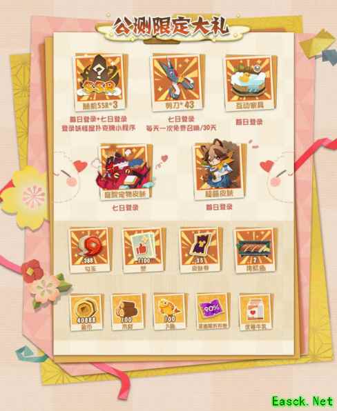 在继承了《阴阳师》IP优质文化的基础上,《阴阳师:妖怪屋》此次又与跨界明星IP携手,在自有风格上的不断延展和探索,以求给玩家带来更多独特奇趣的体验。从目前曝光的官方海报来看,憨态又可爱的熊本熊与圆滚滚的纸片小妖怪们在庭院里一片欢乐,在奇妙的日式庭院里充满着生活趣味,相信会有更多的惊喜玩法设定吧,一起期待更多联动情报吧! 【公测限定福利大放送】 庭院开门进入倒计时,小妖怪们精心筹备的庆典已经完成准备啦,到时,家主们除了可以看到窗明几净的庭院,还将获赠满满当当超丰富的公测限定大礼哦! 大礼一、首日登录首次10连必得SSR式神; 大礼二、首日登录可领互动家具以及超萌皮肤; 大礼三、七日登录可得庭院宠物皮肤,SSR式神,勾玉,剪刀等超级福利!